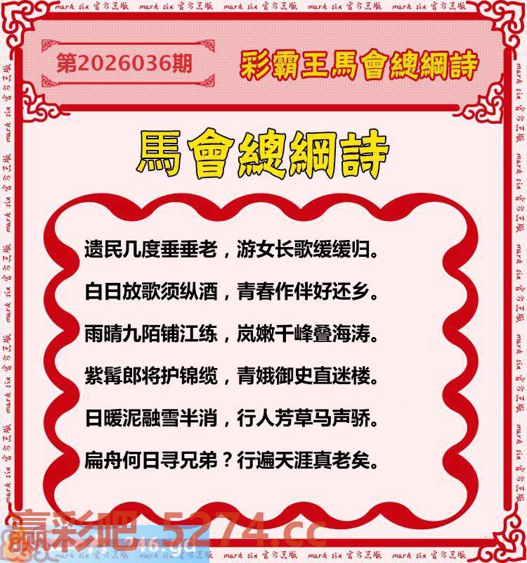 036期:彩霸王馬会总纲诗